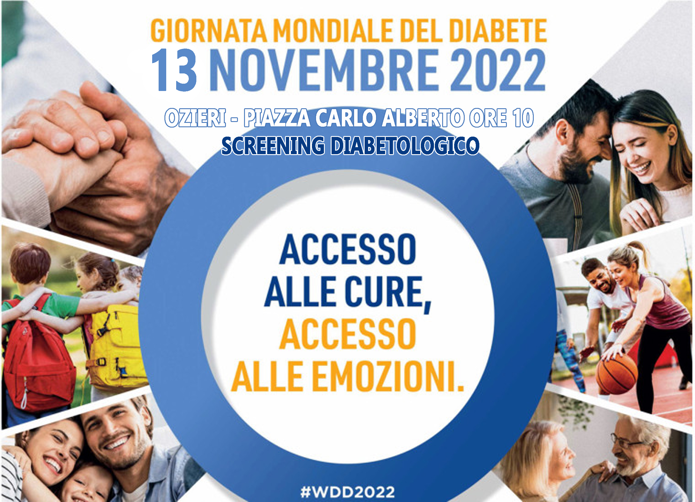 Si informa la cittadinanza che in occasione della giornata mondiale del Diabete, 14 novembre 2022, il personale medico e infermieristico del servizio di Diabetologia pediatrica e il servizio di Diabetologia dell'adulto di Ozieri, sarà presente in Piazza Carlo Alberto, domenica 13 novembre dalle ore 10,00 alle ore 12,00 circa per uno SCREENING glicemico gratuito.