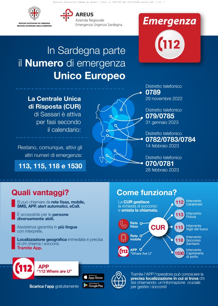 La Centrale Unica di Risposta (CUR) di Sassari è attiva per fasi secondo il calendario: