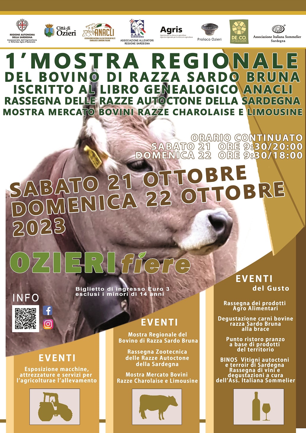 L'appuntamento fieristico, fortemente voluto dal Comune di Ozieri e dall'Associazione Allevatori Regione Sardegna e ANACLI, con il sostegno dell'Assessorato Regionale all'Agricoltura, sancisce la nascita della Prima Mostra Regionale del Bovino di Razza Sardo Bruna iscritto al Libro Genealogico.