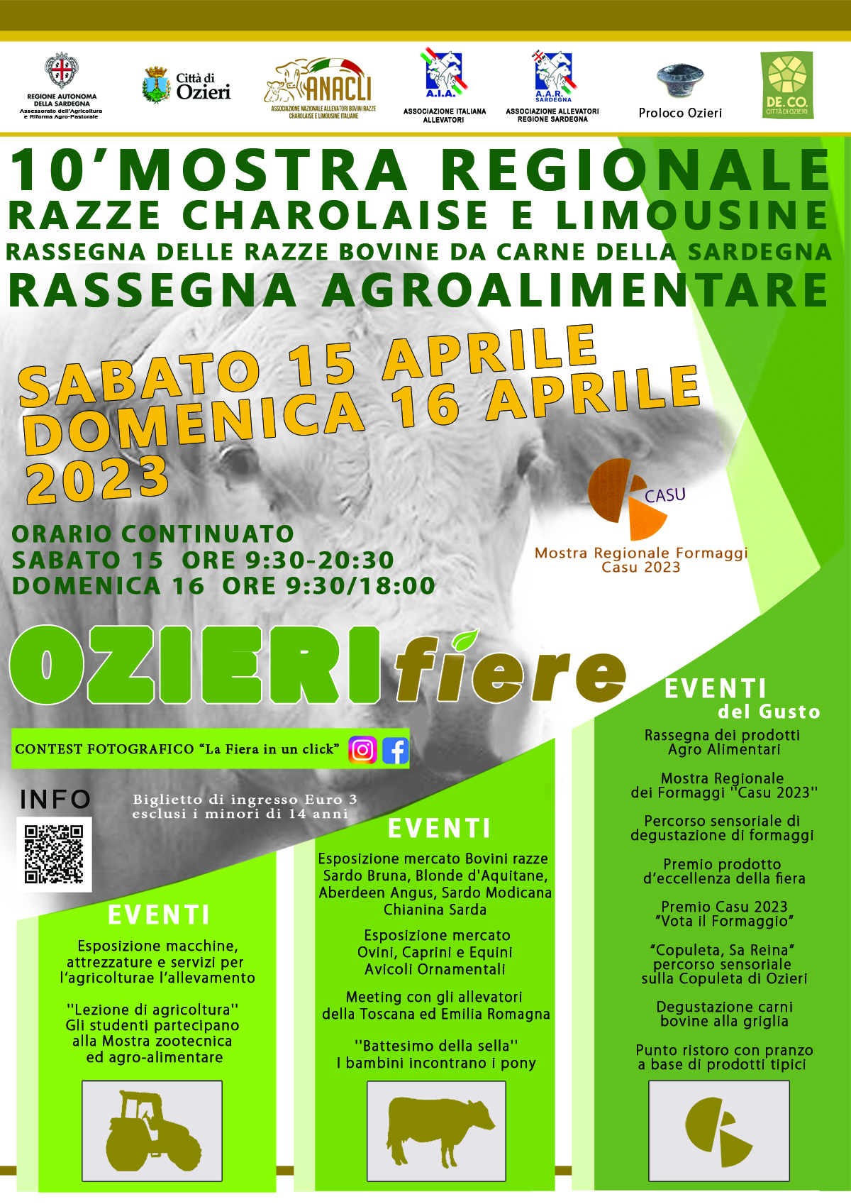 E' stata fissata per il 15 e 16 aprile la fiera zootecnica ed agro alimentare di Ozieri. Nei giorni scorsi la Giunta Comunale ha approvato il programma dell'intera manifestazione fieristica che è stato concordato con l'Associazione Allevatori Regione Sardegna e l'Anacli.