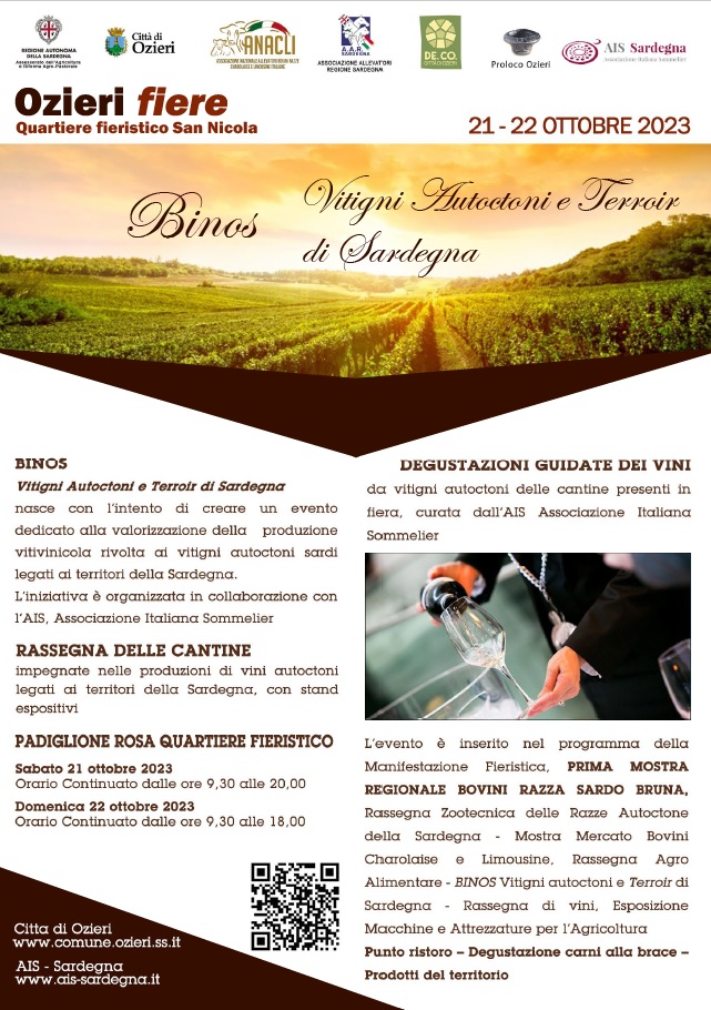 · Binos Vitigni autoctoni e Terroir di Sardegna, con esposizione di vini storici legati ai territori della Sardegna e degustazioni guidate a cura dell'Associazione Italiana Sommelier